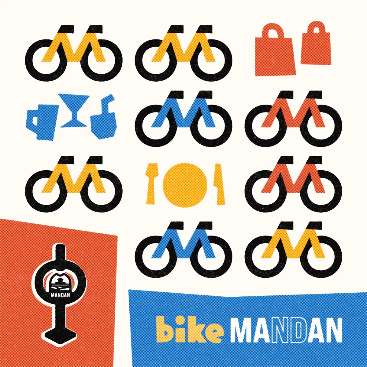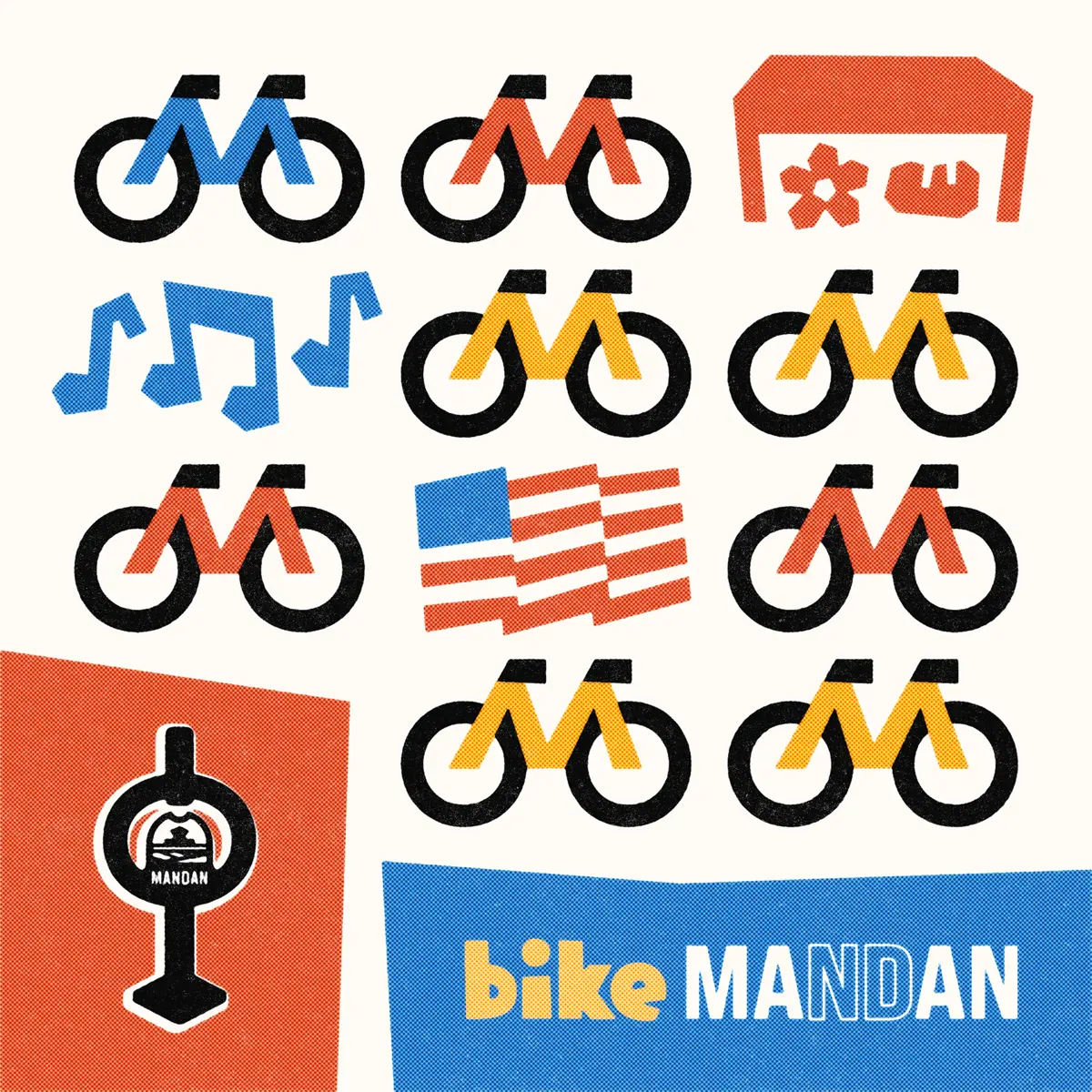 The centerpiece of the campaign is a modernist bike icon featuring subtly angled lines that create an approachable, active feeling. The colored frame of the bicycle intentionally forms an "M" shape, a nod to “Mandan” that adds local relevance.