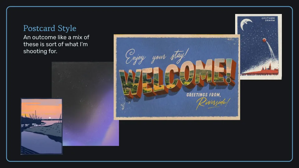 We wanted that classic postcard look, with the letters filled with scenes from the location, as well as a vintage ephemera vibe overall.
